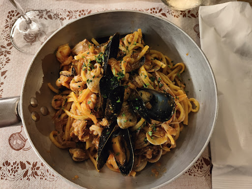 Durante la nostra serata, le cameriere hanno iniziato a lanciarsi cibo e fazzoletti bagnati. Purtroppo, uno di questi lanci ha colpito me, sporcandomi di cibo e bevande. Non solo è stato imbarazzante, ma mi sono trovata in una situazione estremamente sgradevole. Quello che mi ha lasciata più perplessa è stata la gestione del personale: la cameriera vicina a me, alla quale era destinata la pallina di cibo e bevande, si è scusata brevemente, mentre l'altra cameriera, responsabile del lancio, è scappata dentro al locale. Dopo qualche minuto, è uscita e mi ha chiesto scusa in modo molto superficiale da lontano.