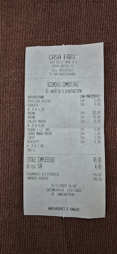 Ci siamo fermati perché è comodo con autostrada, carino il posto, ma non capisco che su menù i primi costava 10 euro e ho pagato 13 euro è niente di eccezionale, locale un po vuoto di clienti, metto lo scontrino allegato. Sto aggiungendo il seguito del commento del gestore,per primo a i vostri piatti è ambiente più servizio ho dato tre stelle,la sorpresa e stato il conto quale ci ha fatto cadere tutta la nostra positività,non mi ricordo di essermi presentato un altro menù o detto personalmente che i prezzi dei primi erano diversi,vi potete rivolgere a chi volete di competenza ma io sono stato limpido è non ho nascosto niente,in più ci dovrebbero essere anche un menù al estero del locale che mi consente di decidere se entrare o no con le proposte del giorno è no a voce,non mi risulta né fuori...