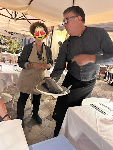 Rinunciamo caffè e dolce per andare a pagare, dopo aver pagato con cc la proprietaria o chi gestisce chiede se tutto ok. Le abbiamo detto del piatto e con stupore ci fa credere di essere dispiaciuta. Sono sicuro che le era stato riferito e lo ha saputo, mi sono sentito preso un po’ in giro. Tanto meno la cameriera che il cuoco, doveva assicurarsi che quel piatto non andava pagato. Poi al volo ci voleva offrire un digestivo, ho rifiutato gentilmente e ce ne siamo andati. Dopo tre prove in questo Ristorante sono sicuro di non tornarci più, mancanza di professionalità e cortesia verso il cliente, non merita, consiglio di correggere qualche cosa, di riflettere sui modi e non accontentarsi del turista di passaggio, chi vuole...