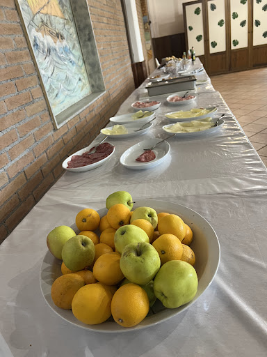 As part of the half board package we came here for a 5 Euros per head breakfast buffet. We were not expecting much and we were correct to do so with rolls that were as hard as rocks. Coffee is made from powdered milk whilst breakfast cereal can only be loaded into glasses. A small mixture of fruit juice is there too. The rest of the food is made of up of cold scrambled eggs (that had turned dark) and a small variety of ham and cheese. Butter, jam, Nutella and some fruit to choose from but be early to get a banana! Croissants are child friendly and came warm which was nice. First day we went in to eat the waiter castigated us for sitting at a table before clearing it with them. For a breakfast buffet. Look… it’s 5 Euros each and saves you the hassle of doing the dirty work when you just want to relax. We came back for an evening meal and it was ok. It is again the waiting staff that seem always in a mood with you for having the temerity to use their facilities. You want an outdoor table as it’s so hot and stuffy inside? Wow it seems a lot of hard work to sort that out for you. They fill you with such paranoia that upon reflection we found it amusing. Oh, and you need to go through a security gate to get back into your campsite that only worked half the...