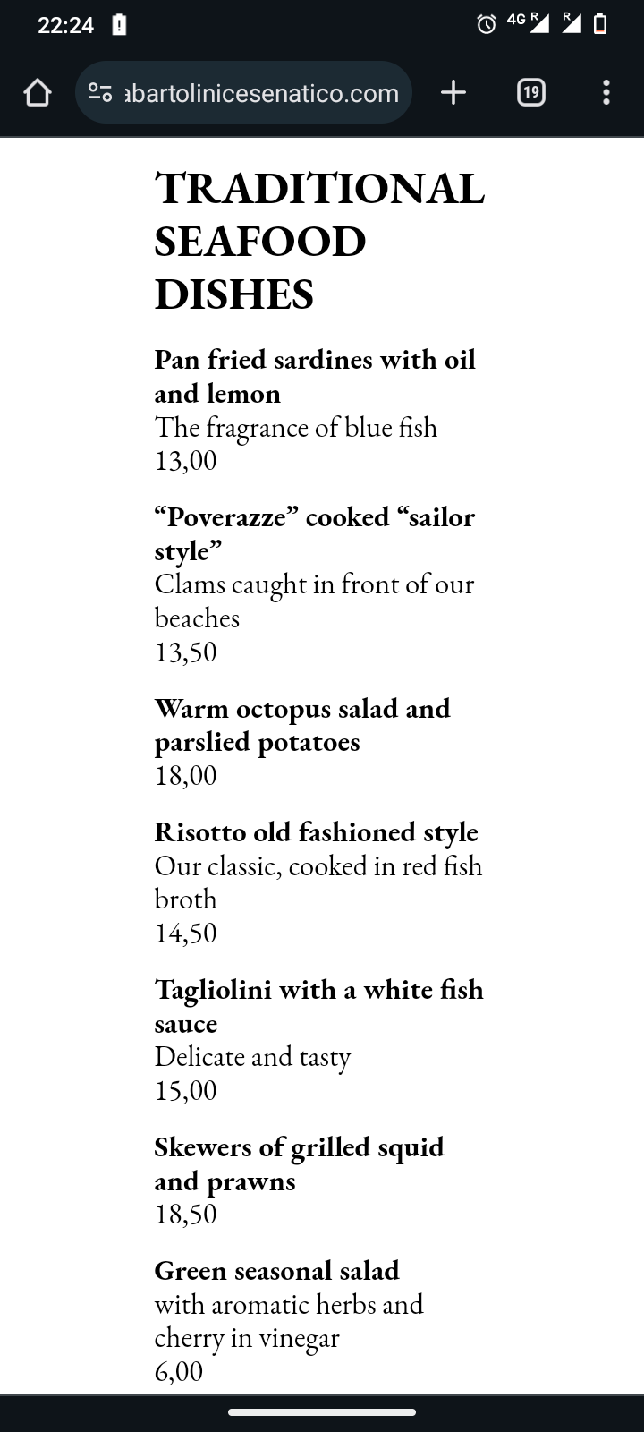 Food looks exquisit, still taste is almost everything and it is disappoining. Expensive for no obvious reason. Service is missing, still somehow it is paid, as the italian invented "coperto". Despite lack of service, lack of traditional dishes (octopus, pasta, pizza, pinsa), lack of soft drinks (just cola and fanta), lack of options. And still, a touch of old-fashion stiffness and superiority. Ambiance could be great thanks to Leonardo's harbour. Too bad it was cancelled by a mistranslated menu (it was changed during our meal, after receiving something not ordered), a very poor waiter and a rude owner that doesn't speak English (an old lady that didn't seem to manage her own business). She managed to find her English to bark at me "let me finish", as I tried to stop her telling us in italian why the "coperto" is to be paid. If it's enough crowd, somebody will eat here, so one bad review doesn't matter. Still, the ones reading reviews before, avoid this place. Cesenatico has many other restaurants...