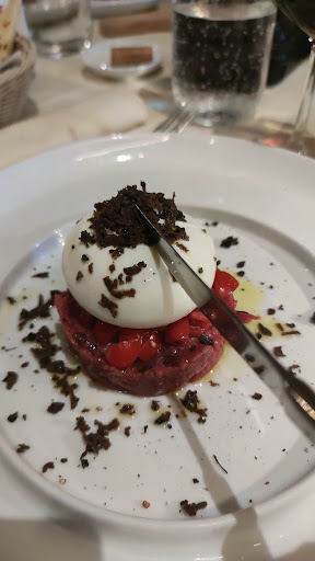 A general note: This habit of seating individual diners at single tables in the middle of the room - like children in kindergarten - just to keep tables available for larger groups is quite harsh. Especially when ordering a steak for 140 euros, not just a quick Margherita pizza - “Osteria flair” or not. As someone who pays a lot of attention to details, it struck me: As a non-local guest, you’re more or less a number here. Genuine interaction, the smile from the owner at checkout, is reserved for regulars. And it hurts when it’s so blatantly obvious.
