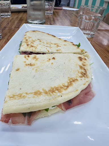 Materie di buona qualità come prosciutto crudo, mozzarella di bufala, basilico, piadina GLUTINE senza infamia ne lode ma gradito il fatto che ci sia (essendo in Riviera Romagnola ci aspettavamo più attenzione al senza glutine), piadina tradizionale non pervenuta.