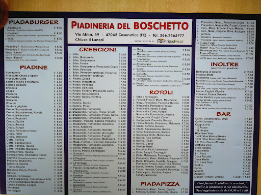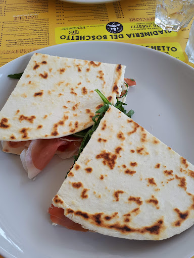 Prenotato delle piadine e dei crescioni da asporto, ci presentiamo 10 minuti prima facendo sapere che eravamo lì, la risposta della ragazza (che faceva sia da cameriera che da addetta alla cassa, quindi, maneggiava banconote, carte, piadine e piatti senza guanti) ci ha risposto in maniera totalmente inadeguata e in modo scorbutico che mancavano 10 minuti. Alla consegna non ci hanno nemmeno avvisato delle piade pronte. Dopo aver pagato, ci accorgiamo troppo tardi che nell’ ordine si erano persi un crescione. Il gusto delle piadine sono nella media, il ripieno lascia abbastanza a desiderare, la salsiccia troppo salata e i 4 formaggi che sembravano 1 sia di sapore che di quantità. Si potrebbe capire i disguidi e il nervosismo della stagione/gente a sedere, purtroppo per loro, i tavoli occupavano nemmeno 30 coperti con 2 e più camerieri a disposizione. Ultima ma non per importanza, imparassero a fare i commenti sgradevoli verso i clienti a bassa voce, possibilmente, senza farsi sentire dagli stessi.