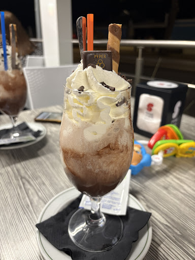 Het was onduidelijk of er bediening aan de tafel zou plaatsvinden. Na 15 minuten zijn wij dit gaan navragen en bleek er wel bediening aan de tafel te zijn. Gevraagd naar soorten ijs waar geen melk in zit, hierbij goed geholpen en geadviseerd. Dit wel pas na navraag bij de bar, want ook na het ontvangen van het menu was er weer 20 minuten geen service, terwijl de bediening meermaals langsliep en ook tafels om ons heen aan het opruimen was.