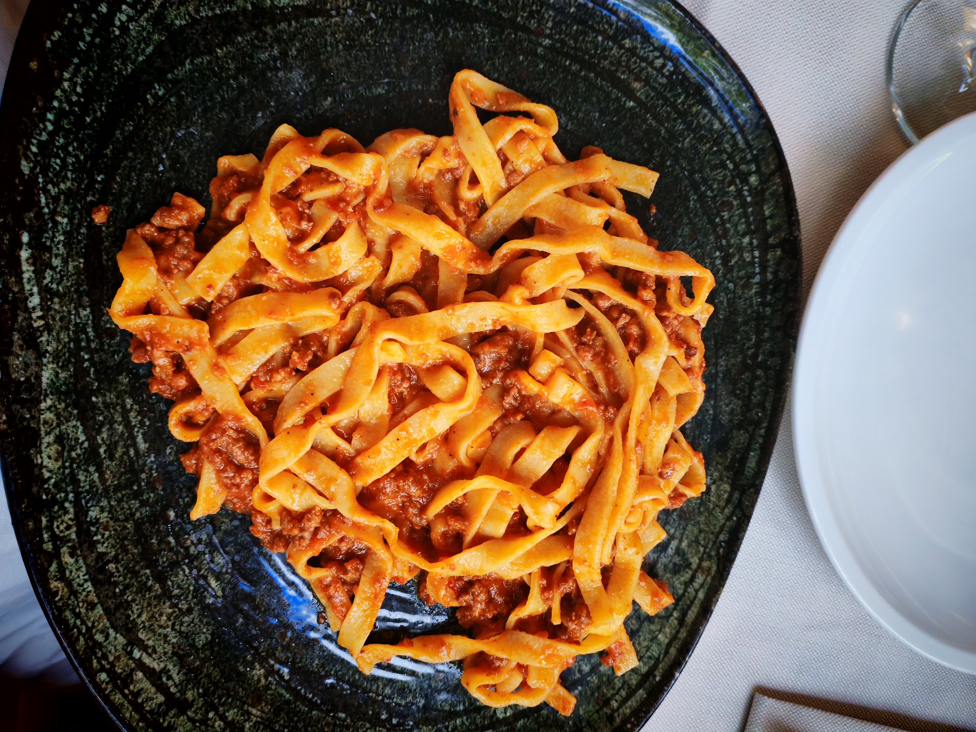 •Tagliatelle al ragù: tagliatella ruvida, spessa, buonissima. Buona la carne del ragù ma pomodoro un po' troppo dolce per i nostri gusti.