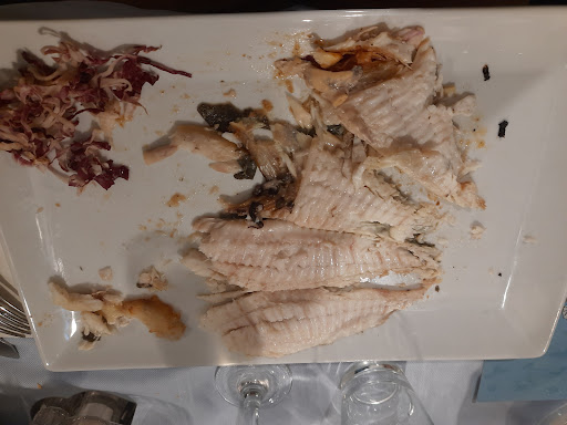 Poi mentre Io sono rimasto su un tradizionale primo di maccheroncini al sugo di seppie, da leccarsi le dita e soprattutto da completare con una doverosa scarpetta, mia moglie ha richiesto un piatto di Razza alla Mediterranea, sporzionata ed appetitosa.