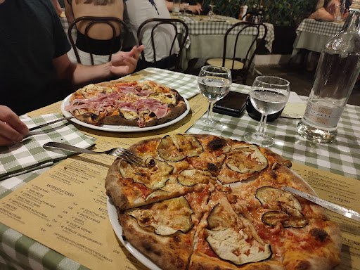 Read morePrenotato per 6, ci fanno sedere in un tavolo per 4 persone. Abbiamo dovuto richiedere i coperti per le due persone non considerate. Ci portano l'acqua e ordiniamo. Una volta ordinato, è arrivato prima un primo (tagliatelle al ragù, sul menù descritte in inglese come "handmade", ma palesemente industriali) del bere (2 birre). Tutti gli altri avevano ordinato delle pizze. Dopo un'ora passata ad aspettare, durante la quale di continuo passava un cameriere portando dei piatti che non erano i nostri, arrivano finalmente le pizze. Buona la pizza in sé, molto meno le patatine che c'erano sopra di una, le quali erano untissime, andando ad appesantire l'intera pizza. Finite le pizze chiedemmo altre due birre, mai arrivate. Andando a pagare rendiamo nota questa cosa al cassiere (direttore presumibilmente), il quale ride dicendo che una se l'è bevuta lui dato che erano sul bancone del bar ferme da un bel po', scherzando anche sul fatto che fosse "caldina". Chiediamo un caffè al banco, al momento del pagamento: il cassiere-proprietario(-barista) ne fa due, uno lo beve lui e l'altro è quello che avevamo richiesto; manda giù il caffè e si accorge anch'egli che aveva un retrogusto di bruciato, e se ne lamenta con noi😂. Alla fine il prezzo a persona è stato in linea con gli altri ristoranti della zona.