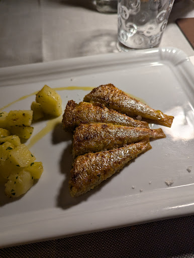 Read moreAllora.. se si accetta che oggigiorno una pizza e una birra possano arrivare a costare sulle 20 euro, allora è più che accettabile, una volta ogni tanto, a parer mio, pure spendere dalle 48 alle 55 euro circa per una mangiata di pesce azzurro, quindi "povero", ma cucinato come MEGLIO NON SI PUÒ. La frittura, ad esempio, è stata per me una rivelazione, una folgorazione: profumatissima, il pesce morbido, rilasciante i suoi veri sapori, ma fuori la panatura era croccante. Come diavolo avrà fatto. Ma poi pure quegli antipastini marinati... il piatto gratinato... persino una specialissima panzanella, che aveva dentro del pomodoro mai assaggiato così buono... la pasta con pesce e zucchine, profumata e cremosa. Dunque, "per me è un sì", come si suol dire, e se riesco ci ritorno; ma ora voglio pure accennare alle cose che non vanno, e sono: alcune cianfrusaglie messe qua e là, le sedie scomode in veranda, il cameriere privo di empatia e parlante a voce sussurrata, ma solo con i forestieri, perché con i locali è tutt'altra persona. Inserirei pure il fatto che il pranzo, il "percorso" è durato quasi due ore e mezza, non è poco, con in mezzo attese di 15 minuti tra un piattino e l'altro. Dico piattino, perché le portate sono numerose (quattro antipasti freddi, un antipasto caldo, due piatti interlocutori a base di ortaggi, poi una pasta al pesce, poi la famosa frittura, cinque fette di ottimo pane, infine la pannacotta), ma di certo le quantità non sono da camionista, finiscono presto e poi si ritorna ad aspettare... ad aspettare... Leggevo, all'ingresso, le regole del gioco: a pranzo è disponibile pure un piccolo menu probabilmente non di soli piattini, la prossima volta dunque, proverò a scegliere dal menu, forse il pranzo durerà una bella oretta di meno (e se la proprietà, a tal proposito, volesse confermare o smentire, credo farebbe cosa gradita). PS: dimenticavo i prezzi. Degustazione € 45, sia a pranzo che a cena, tutto il bere non è compreso nel prezzo, il coperto sì, tutti i piatti del menu a pranzo sono venduti ad euro 14. E non si dica che si esce "con la fame",...