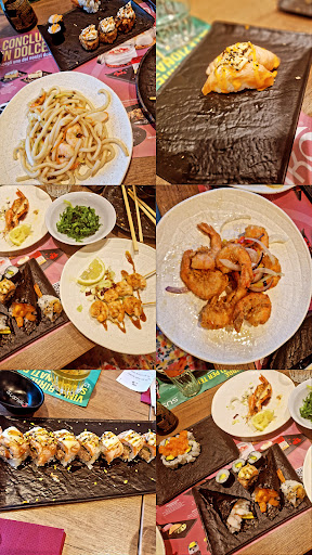 Sushiko trovato per caso in zona mentre eravamo in visita al centro commerciale per passare un po di tempo. Non il primo ristorante di questa catena che provo, mi sono sempre trovato bene anche in quello della mia città ma devo dire che questo l'ho trovato migliore e non di poco, il prezzo è il medesimo e questo è un vantaggio non indifferente vista la qualità, il servizio e l'accoglienza. Le pietanze sono più o meno simili a ciò che già assaggiato in ristoranti simili di questo gruppo o di altri sushi in generale, alcune cose sono state piacevoli sorprese però tutto ok in quanto a qualità e velocità nel portare a tavola gli ordini. Ci sono stati piatti nuovi mai provati e interpretazioni diverse di alcuni piatti che mi sono piaciuti, mai assaggiato il pollo all'arancia(molto buono e mi piacerebbe averlo anche in altri jappo), pollo con le mandorle a fettine molto più soddisfacente della versione con mandorle intere, poi i roll di sushi beh simili e senza infamia ne lode, molto buoni ma come sempre tutti simili tra locali, nulla di strano, unica nota negativa sono i ravioli di gamberi che ho trovato pessimi, tra i peggiori mai mangiati, davvero un peccato perché se ben fatti sono fra i miei piatti preferiti al jappo. Comunque resoconto finale molto positivo, ci siamo abbuffati, abbiamo mangiato buon cibo, arrivato tutto(cosa non scontata in questo tipo di locale) e il prezzo finale in linea con i prezzi medi se non minore,...