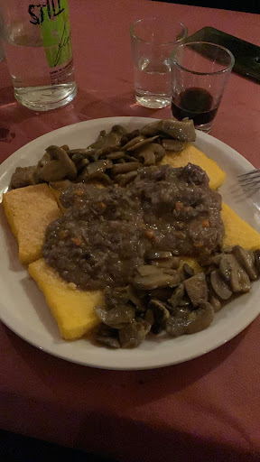 Non è la prima volta che vado in questo posto e non sarà nemmeno l'ultima! Di solito organizziamo cene di gruppo, perché oltre ad offrire, musica dal vivo dove si può urlare o cantare tra i tavoli, discoteca dove poter ballare, c'è un menù fisso veramente ottimo! Eravamo 15 persone, 28 euro a testa, 3 primi tortelloni di ricotta burro e salvia, pappardelle al cinghiale, graminia e salsiccia, gnocco fritto, focaccia e salumi, grigliatina di carne e patatine fritte, bevande incluse! Tutto veramente ottimo da provare assolutamente, consiglio di prenotare perché il posto è sempre murato di persone. Ps le foto ne ho solo una perché ad ogni portata mi tuffavo nel piatto e dimenticavo la foto! Sorry😂😂 ah dimenticavo un amico è allergico al glutine, ma anche lí sono stati impeccabili ed hanno offerto una bella scelta di primi ed erano già ben informati su come...