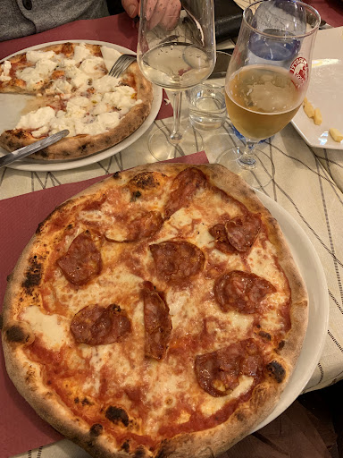 One of the tastiest pizzas in Italy. If you're landing at Bologna airport and you're in the area, be sure to stop by here for a delicious pizza. We ordered three different pizzas and all three were very tasty. One was with prosciutto and fiore de latte and the other two with mozzarella and extras. Pizzas are cheap, 8-9 Euros if you take-a-go and plus 2Euro if they serve it to you on the spot. While we were eating there on Sunday evening quite a few people got pizzas. They are really very tasty. The service is very good and friendly. Our waiter, a young guy, spoke English and kept asking us if we needed help with translation because the menu...