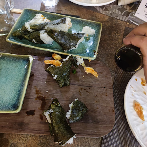 Già l'anno scorso una sera, a metà cena, ci fu detto che era finito il riso e con quel poco rimasto dovevano servire un altro tavolo arrivato per non fare brutta figura. non ne facemmo un dramma, Però sinceramente farci poi pagare per intero non mi sembrò una mossa leale perciò non ci andammo più. Siamo tornati stasera: nigiri e uramaki ultra pieni di riso, classica tecnica per farti riempire mangiando meno pesce (vado agli all you can eat dal 2011 e viaggiando molto e andandoci spesso Sarò stato in almeno 50 ristoranti quindi un piccolo metro di paragone ce l'ho), ma il peggio sono i temaki. Una quantità di riso disumana (foto parlano),infatti avendo capito palesemente la "strategia", il riso superfluo l'ho lasciato. Poiché dovevano arrivare ancora solo i sashimi, chiediamo intanto di ordinare altro e ci è stato detto (in maniera anche molto sgarbata) che dovevamo finire tutta la roba del primo ordine prima di poter ri-ordinare, cioè i sashimi in preparazione e il riso superfluo dei temaki. poiché Sinceramente non mi va di essere preso in giro perché questa è a tutti gli effetti una presa in giro, rispondo che è impensabile presentare un temaki del genere. La risposta? "noi li facciamo così". iniziamo a ridere adesso: la proprietaria ha detto che ci avrebbe fatto pagare il sovrapprezzo per questo SPRECO di cibo (che, contando che era appunto riso già cotto e veramente pieno di aceto di riso che lo ha reso anche gommoso e poco buono, saranno stati ESAGERANDO 30g di riso 😂😂😂).chiedo a quanto ammonta questo sovrapprezzo e mi viene detto che ci avremmo pensato in cassa. E già qui si denota una totale mancanza di professionalità. la proprietaria non sembra la persona più propensa ad accettare critiche e si è decisamente ingastrita dopo quanto successo, Infatti avevamo ordinato 4 porzioni di sashimi di salmone, 4 di tonno e 4 misti: sono arrivati solo i 4 misti. Dopo TANTO tempo viene a prendere il secondo ordine che consisteva in 4 tartare di salmone, 4 di salmone con riso e avocado, 4 di tonno 4, di branzino e 4 miste. Oltre a rifiutarsi di farci le 4 al salmone e mango senza mango ma questa è la meno, ci viene detto che è finito il tonno, e non arrivano le quattro miste e le quattro col branzino. Inoltre (questo essendo di spalle non l'ho visto coi miei occhi), al mio tavolo hanno detto di aver visto uno dei sushi man sputare a terra o chissà dove e, dopo essersi accorto di essere stato visto, l'ha presa mettendosi a ridere..... Vabbè. Al momento di pagare, nella maniera più diplomatica e civile, Mi sono voluto confrontare con la proprietaria sull' accaduto, rendendole noto che i sashimi non erano arrivati, mentre lei diceva di si. Quindi secondo lei,3 fette di tonno contate chiuse a mò di rosa sono il quantitativo di una porzione di sashimi e la parte del misto (LOL). Dopo averle chiesto quante fette erano previste, mi dice 5 di tonno per la porzione singola e 3 del misto, confermandomi quindi indirettamente che erano arrivati solo i misti 😂😂😂Allora le dico che anche 8 tartare non sono arrivate e mi fa "ti ho detto che è finito il tonno, può capitare (che poi che catso c'entra col BRANZINO che non è arrivato ma ok..), poi direi che di crudo ne hai mangiato abbastanza. E non ti ho manco messo il sovrapprezzo del riso" (wow, che signora 😂). Quindi le dico che non le ho detto io di aprire un all you can eat se non le sta bene che uno "mangia abbastanza", e mi dice che posso anche non tornare più. Le rendo noto che, oltre che già di mio ero arrivato a questa conclusione, era già la seconda volta che si facevano mettere una pietra sopra per quanto successo l'anno precedente detto a inizio recensione, e ci fa "allora vada per la terza". Unica nota positiva, almeno il pesce era ok. Ma tolto ciò, esperienza molto negativa, e la quantità di recensioni negative denotano che non sono un...