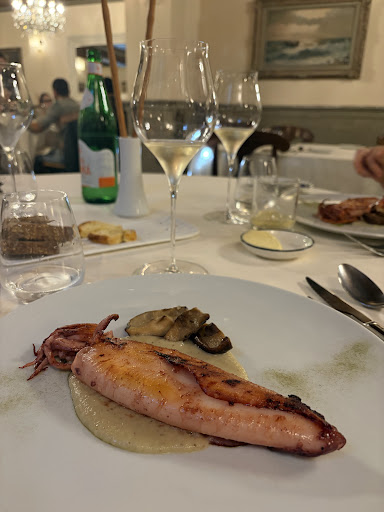 Delicious food, however the portions are considerably small. Roby had a fancy starter, cappasanta, which was quite small, while I had a much bigger portion starter (duck's liver pate, superb 👏🏻!), then his main dish, which was a grilled swordfish fillet, was also very small (I had tagliatelle al ragù 😋🥰). So, even though there had been lovely bread and grissini, when we finished eating he was still hungry and he ordered a dessert. I can't eat sugar, so I couldn't, since they didn't have any options. It was very expensive for the quantity, but the quality was impeccable. I noticed that there is a degustazione menu, and I think the cost was better and they obviously think about the harmony between the dishes and the quality, since they serve many dishes, starter, the first (pasta), the second (protein), the side dish, etc. The service is a dream... and the room...