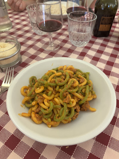 Dopo un torrido lunedì a Bologna scegliamo per comodità questa trattoria sulla nostra strada di rientro. Ci accoglie il proprietario che gentilmente ci indica il tavolo. Locale fresco, stile classico da osteria con tovaglioli e tovaglia a scacchi, in stoffa non carta! Il ragazzo che gestisce il servizio di sala/bar è super cordiale, rapido e attento. Abbiamo mangiato delle tagliatelle al pomodor, una gramigna con ragù di salsiccia eccezionale, un polpettone ripieno di uova e spinaci molto buono con delle cipolline al forno top e un insalata fresca. Per concludere dolci tipici ben fatti, zuppa inglese e torta di riso. Il tutto accompagnato da un buon lambrusco mosso. Ai tavoli escono a portare i piatti anche le signore che gestiscono la cucina, l'aria che si respira è molto rilassata nonostante tutti i tavoli fossero pieni, anche i clienti molti dei quali abituali, si sono rivelati molto gioviali e piacevoli. Infine il conto con un rapporto qualità prezzo davvero ottimo!...