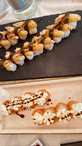 Read moreConsigliatomi da un collega, ho voluto provare questo ristorante per vedere se tra la vasta offerta di sushi che vi è nel locale territorio trovavo qualcosa di "già visto" o di "nuovo da vedere". Il locale si presenta bene ed è ordinato all'interno quanto all'esterno (ha un bel patio spazioso). Il menù (costituito da pietanze giapponesi e cinesi) è all-you-can-eat alla carta con alcune limitazioni come da prassi per alcuni piatti ma alla fine non sono così fiscali. Gli uramaki sono di dimensioni inferiori a quelli che si trovano in altri "giappo" MA hanno il pregio di non avere quell'anello esterno di riso spesso ma sottile per cui si gusta meglio il "cuore" delľuramaki per il gusto scelto, aspetto non indifferente. Qualità cibo buona e servizio attento ai bis (se non vedono piatti in consumazione chiedono se si vuole altro). Valutazione positiva e...