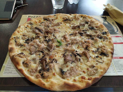 ...sono ad Altedo...l'orario è giusto ..per gustarmi una pizza e decido per questa pizzeria .Il parcheggio è comodissimo ( proprio davanti ) .La musica non è male...R.MONTERCARLO è una garanzia ..mi siedo per leggere il menù e vedo un cartello con scritta PIZZA ..ZUCCHINE e GAMBERETTI ..dai mi ispira e la ordino. Il personale non è male (ragazzi giovani e preparati ) il locale pure sedie di legno ,e tavoli in venghe'...ma ahimè la pizza non sa di niente, pomodoro normalissimo,mozzarella nella media ...i gamberetti non sanno di niente, forse si salvano le zucchine ( ma di poco). Cerco di rifarmi con il caffè ..."insomma" .. 5-...ma il gusto dov'è ??🤔 che dire!!!!! SI È UNA pizzeria da asporto ...ma se ti siedi ...spendi il doppio 😢 A voi...