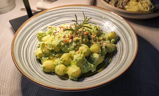 La Maiolica is a small cozy restaurant. It is located on a small street and has both, indoors and outdoors seating. The menu is typical for the region with a great selection or pastas, mains, and wines. We had lunch on a hot summer day and tasted their panzanella salad, pasta, gnocchi, and local wine. Everything was delicious. One of the my favorite things we had was their bread. The restaurant is owned by a couple, with husband being the main chef and wife working with clients. They are very attentive to the needs of their clients and can make changes in dishes if there are intolerances or allergies. I would recommend booking a table as it is a popular place...