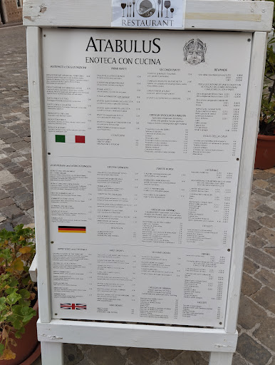 Sono stato all’Enoteca Atabulus e l’esperienza è stata davvero memorabile. Ambientazione accogliente, servizio impeccabile e una qualità dei prodotti che merita tutti i complimenti. Il locale ha un fascino autentico: un’enoteca con cucina che riesce a essere sia elegante che informale. Situato in Piazza Rinascimento, è perfetto per un pranzo rilassante in pieno centro storico. L’atmosfera è curata nei dettagli, con un calore che rende piacevole anche una sosta veloce. Il menù offre piatti ben pensati, con attenzione alle materie prime locali. Ho provato l’antipasto misto con salumi di prima scelta, poi i ravioli fatti in casa e un risotto perfettamente mantecato. Ogni piatto era equilibrato nei sapori, originale ma tradizionale al tempo stesso. La selezione dei vini è ricca e curata, con ottimi abbinamenti proposti dal personale. Personale cortese, preparato e appassionato. Nonostante il locale fosse piuttosto frequentato, non ho mai avuto l’impressione di essere “solo un cliente in più”. Hanno saputo consigliarmi bene e gestire i tempi con grande professionalità . Prezzo & rapporto qualità -prezzo assolutamente giusto per quanto offertomi: ingredienti eccellenti, preparazioni curate, ambiente ricercato. In conclusione, Atabulus è il posto ideale per un pranzo di qualità a Urbino. La sera apre solo su prenotazione, e credo valga la pena organizzarsi per provarlo anche in quell’occasione. Se cercate una cucina che valorizza il territorio con un pizzico di creatività , accompagnata da un bel calice di vino, questo è...