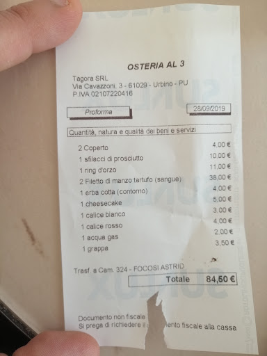 Read moreMa vuole essere un ristorante rustico od elegante? Un ”gazebo” in mezzo alla stanza, un’enorme vetrina anticata con luci psichedeliche dietro il bancone, fiori finti sui tavolini in legno rustico con sedie eleganti (ereditate dalla gestione precedente!!), musica lounge in sottofondo... Qualità del cibo: l’acqua viene servita in bottiglie di plastica da discount, l’olio d’oliva Coricelli come da supermercato. Antipasti: tartara completamente scondita, burrata secca al sapore di formaggio stagionato, fagiolini scotti e insapori, tasca di pollo farcita agli spinaci secca (troppo a lungo in forno?), tortellini alla boscaiola come da autogrill, cheesecake e crêpes alla nutella appena discreti. Qualità del servizio: un menù per i dolci da leggere in cinque persone (!!), un’attesa di 50 minuti per gli antipasti, due camerieri per tutta la sala gentili ma in evidente difficoltà. Conto: la ciliegina sulla torta: bancomat in palla, necessaria raccolta fondi per pagare in contanti. Importo decisamente da ristorante elegante e non da osteria, ma....ti avessero offerto almeno un...