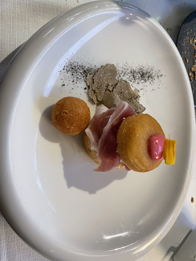 Read moreAbbiamo festeggiato la laurea di nostro figlio. Che dire una meraviglia. Dalle bollicine agli svariati antipasti,dai delicatissimi ravioli, al galletto all'aglio nero, tutto squisito.Abbiamo gustato le diverse portate con tutti i nostri sensi :un'esplosione di sapori, di colori, di profumi. La location è curata in ogni dettaglio, il personale professionale e molto disponibile.Il signor Cristian, proprietario e chef ha una grande qualità:sa accogliere la clientela. Oltre la professionalità, la competenza, la garbatezza, la gentilezza, la disponibilità , la simpatia, ciò che rende il signor Cristian unico è la capacità di far sentire il cliente a suo agio, al quale gli rivolge tutte le attenzioni ed è come se lo conoscesse da sempre, sa usare le parole giuste, lo rende parte di sé, del suo amore, della sua passione per la sua cucina che è una vera esperienza di vita. Gustando i suoi piatti, che coinvolgono tutti inostri sensi, coccolati dalla presenza continua e garbata, direi quasi vellutata, del personale e del signor Cristian, in un posto perfetto, accogliente e di gran gusto, si prova una sensazione unca, piacevolissima: si è invasi da tanta bellezza,quella vera, da tanta serenità e felicità. Tutti dovremmo avere la fortuna di provare questa sensazione, che solo il signor Cristian è in grado di donare. Il suo è un dono, una bella qualità innata, che è parte di sé....