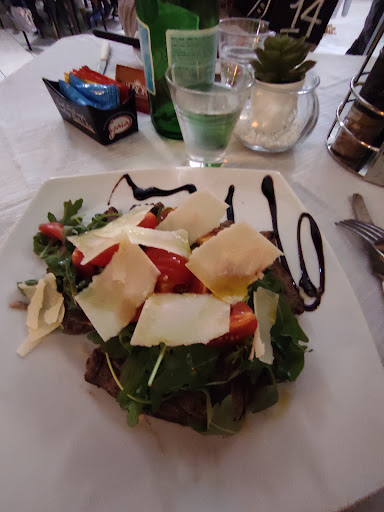Stasera siamo stati in questo ristorante pizzeria dove abbiamo gustato un ottimo antipasto accompagnato da focaccia calda, patatine fritte, poi alcuni di noi hanno preso la tagliata di manzo con rucola e grana altri con funghi porcini, e la pizza pugliese, per finire pizza alla Nutella, siamo rimasti veramente soddisfatti della qualità dei cibi proposti e del costo adeguato, personale molto attento a soddisfare le richieste dei commensali...ci ritorneremo...