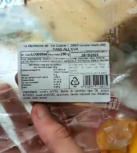 Ogni volta che mi reco all'Eurospin, acquisto il loro strepitoso pane all'uva. Eccezionale è dir poco! Sono rimasto molto sorpreso di averlo trovato anche all'Eurospin di Domodossola, in Piemonte. Li andrò sicuramente a trovare un giorno ad Usmate Velate in quanto meritano una visita. E come si vede dalla foto dell'etichetta usano solo ingredienti naturali! Questo identifica la bontà...