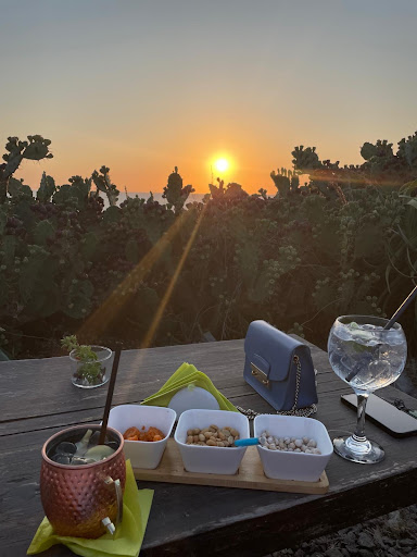Read moreVale la pena andare in questo posto soltanto per il tramonto, comunque ammirabile anche senza dover per forza sedersi nel locale. Appena arrivati ci viene comunicato che la cucina è chiusa, poco male perché non avevamo comunque in mente di fare un apericena. Ordiniamo due cocktail standard (di cui un moscow mule “variante” al gusto pesca dove di pesca non c’era traccia) dal modico prezzo di 10 € ciascuno, al momento del pagamento ci vengono addebitati Ulteriori tre euro per un “tris”, ossia per le tre ciotoline con arachidi, ceci secchi, e riso soffiato piccante stantii di non sappiamo quanti giorni, tra l’altro da noi non richiesti e portati al nostro tavolo senza che ci venisse comunicato che si trattava di una aggiunzione. Non è per i tre euro, ma per le modalità. Fareste più figura a farvi pagare il coperto a questo...