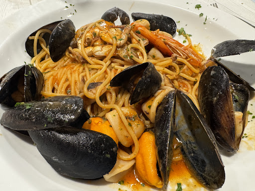 Abbiamo ordinato gli spaghetti allo scoglio, piatto forte del locale: semplicemente deliziosi, ricchi di sapore e con pesce freschissimo! A seguire un ottimo fritto misto, una pizza ben lievitata e cotta alla perfezione, e la farinata, che ci ha sorpresi per la sua bontà.