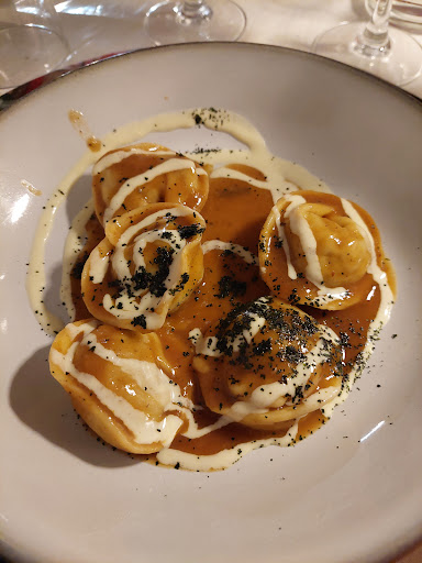 Sulla collina pratese di Schignano, sono andato dopo aver visto le recensioni positive; confermo appieno e aggiungo, che siamo andati oltre le più rosee aspettative. Leonardo, il ragazzo che gestisce la Locanda e presente in sala, sempre attento al servizio e molto disponibile. Ambiente non molto grande, ma curato. Abbiamo preso un antipasto, per 4 persone, servito in un unico grande tagliere, che racchiude tutte le loro specialità di antipasto, pieno di tante cose fatte da loro, dalla giardiniera alla trippa, passando per i fagioli, vari crostini, e coccoli con pasta normale e nera, da mangiare belli caldi con gli affettati. Poi siamo passati ai primi, pasta fatta in casa, da tortelli a gnudi, oppure i tonnarelli come ho preso io, in sostituzioni dei pici. Porzioni generose, impiattate con classe, e da gustare nei sapori e nelle materie prime. Ma la parte forte, sono stati i dolci, e mi riferisco al cheesecake preparato da loro, con marmellata di arance, che reputo strepitoso, e che non mangiavo ormai da anni, cotto in forno alla vecchia maniera. Vino e acqua, con caffè ed amaro per chiudere in bellezza. Prezzi giusti per quanto proposto. Da consigliare e ritornare, anche per provare a cena, la pizza nera, che sicuramente promette bene, visto anche il forno a legna presente. Un plauso a tutti i ragazzi, che lavorano in questa piccola...