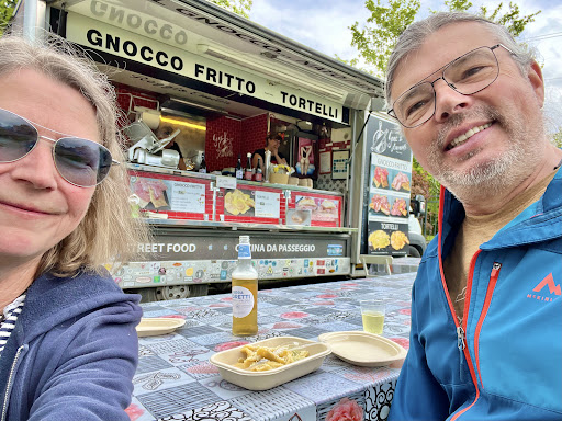 Read moreAbbiamo scoperto per caso questo chioschetto ambulante, sulla strada per Quattrocastella. La signora ha detto che staranno in zona fino a fine mese e poi riprenderanno a girare, in Lombardia soprattutto... Peccato perché fanno il gnocco fritto STRABENE!!! È davvero buonissimo, per niente pesante, fritto a regola d'arte e soprattutto NON USANO LO STRUTTO, perciò è adatto anche a noi vegetariani!! 😍 È piaciuto da matti anche al resto della famiglia onnivora, sia per il gusto che per la frittura perfetta!! Fanno anche pasta fresca e vendono salumi e formaggi per accompagnare il gnocco... Presente anche un tavolo con panche per chi vuole mangiare lì sul posto... Visto che su Google non ci sono altri dati, metto il loro biglietto da visita nelle foto... Complimenti, fate un gran lavoro ben...