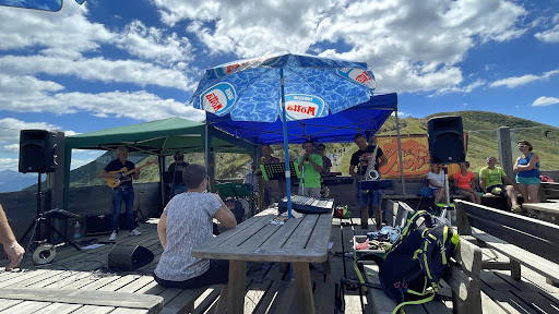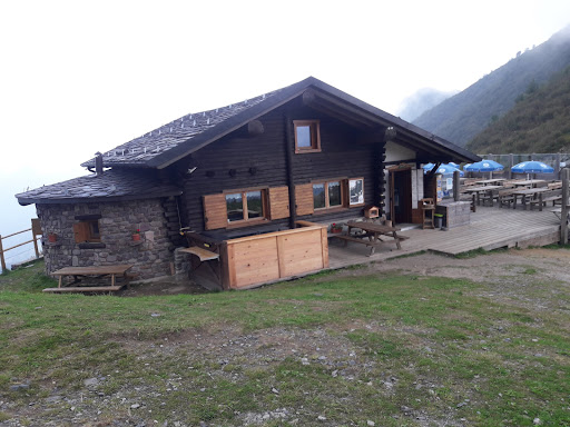 Read moreNelle ore di punta in particolare se c'è qualche evento c'è un po' di confusione il posto è molto carino e la vista È veramente molto bella per quanto riguarda il mangiare non è male ma su alcune cose prezzo è veramente troppo alto €18 per un piatto di grigliata mista con 1 spiedino 1 aletta di pollo delle salamelle 1 pezzo di formaggio e 1 pezzo di polenta e delle verdure grigliate oppure €14 per un tagliere per due persone con poco affettato (4 fette di salame , 6 di bresaola 4 di speck 4 di cotto 4 pezzi di formaggio e 10 olive mi sembra eccessivo. Lodevole invece la buona volontà e l'entusiasmo dei ragazzi che lo gestiscono. Sicuramente ci ritorno ma per mangiare mi fermo al rifugio più sotto dove con 40 euro mangiamo in 4 primo secondo e bibite. Non adatto a chi ha problemi con il sole in quanto essendo sopra i 2000 non ci sono...