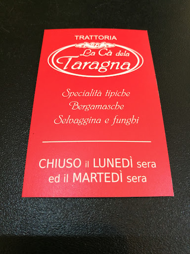 Oggi 21 settembre, con tutto l'anticipo possibile, (per il 5 ottobre) ho prenotato tavolo per 3/4 persone (la quarta da confermare) presso la Ca' della Taragna, per inizio pranzo alle 12,30. Praticamente il tavolo disponibile era dalle ore 11,45 fino alle 13,45). Diversamente nessun posto disponibile. Premesso che non mangio negli orari dell'RSA e in famiglia non siamo in molte persone ne deduco che per poche persone vale l'orario della RSA, (forse, dico forse perchè non ho la possibilità di verificare) per i gruppi di persone meno esigui va bene prenotare con inizio alle 12,30, magari senza dover lasciare il tavolo libero alle 13,45, come è stato richiesto a me.) Incredibile!!! Una cosa del genere mi era già successa tempo fa, sempre alla ca' della Taragna, ma avevo pensato ad una eccezione perchè si trattava di una ricorrenza particolare dell'anno. Mi spiace perchè li si mangia bene ma non è certo un ristorante in cui andare in pochi. I proprietari, giustamente, preferiscono un guadagno più cospicuo. In merito alla risposta della Sig.ra Cristina, purtroppo non mi sono inventata nulla. L'orario disponibile a partire dalle 11,45/13,45 me l'ha fornito la sua dipendente IN RUSPOSTA ALLA MIA TELEFONATA DI PRENOTAZIONE (da me ripetuta pari pari in viva voce a mio marito al mio fianco senza alcuna correzione o smentita da parte della vostra collaboratrice al telefono. Poi lei Sig.ra Cristina può dire quello che vuole ma la telefonata è ...