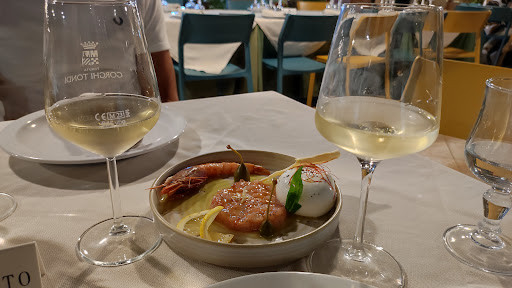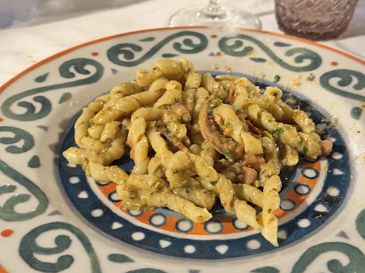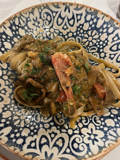 We had a decent but not amazing dinner here recently. The restaurant is nicely decorated and has a homely and inviting trattoria feel, both inside and outside. We were one of the first guests and got quickly seated. We ordered primi and secondi and some drinks. For primi, we had the gamberi rossi (red prawns) seafood tagliatelle and the pasta with cinghiale ragu (wild boar). For secondi, we had the sword fish and the breaded cutlet. The primi were definitely better than the secondi and especially the seafood pasta was very tasty. The secondi were slightly forgettable. They were definitely not bad but they also didn’t wow us. Unfortunately, several of the secondi on the menu were not available, as we would have preferred those. The service staff or kitchen also messed up our dessert order. We had ordered the crema catalana and the lemon sorbet but instead they brought the crema catalana and the tiramisu (both were pretty good but again by far not the best we’ve had in Sicily and mainland Italy). They also misplaced the order between the two of us, which can of course happen but shows a lack of attention to detail. Overall, the service was somewhat inattentive and not very friendly, so there’s definitely room for improvement in that department and therefore only 3 stars in total, although the overall experience is more a 3.5 stars. Another small annoyance was the cheesy saxophone music that played in the background during the whole dinner, including a big TV screen that we think is not necessary given the comfy feel of the restaurant in the...