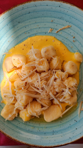 Ieri Pasquetta siamo state 4 persone a mangiare ma non credo ci ritorneremo né consiglieremo...ci dispiace..Perché? Pieno di gente e camerieri inesperti o improvvisati che non sapevano neanche dove portare i piatti...spaesati..chiesti e pagati 2 taglieri di affettato da 15 euro cad.e il tagliere unico arrivato pagato 30 euro...un paio di affettati e 4 pezzetti di formaggio...ma scherziamo? Dopo aver mangiato io un piatto di tagliatelle che erano 3/4 forchettate 16 euro e rimasta affamata...(Ah..pagate 2 porzioni di patate 9.00 pur avendo ricevuto un solo piatto a tavola..) chiedo il dolce senza sapere i costi... tiramisù rivisitato..beh 7.50 € di biscotti tipo Oreò sbriciolati con caffè solubile e crema che era per i fatti suoi...bocciato!! La location poi non si presenta neanche granché all esterno e senza parcheggi "a norma"... è vero che era Pasquetta, ma pensate che la gente rubi i soldi??? Rapporto qualità/prezzo...