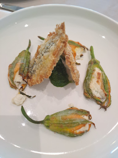 Read moreMeraviglia! Sono uscita da tre minuti e voglio già condividere questa bella esperienza. Di passaggio, non conosco la zona, mi fermo quasi per caso. Ambiente elegante, curato ma sin da subito non mi mette soggezione grazie all'accoglienza educata, formale ma "delicata" delle ragazze addette al servizio. Un menù particolare, pare complesso ma ogni sapore, ogni ingrediente è trattato con rispetto, si sente ogni dettaglio. Servizio impeccabile. Chi segue le mie recensioni sa che la cosa che apprezzo maggiormente è il sorriso. Lo so che è fatica servire, assecondare le diverse esigenze, ci sono passata....ma se mi servi a tavola con il sorriso rendi la mia permanenza di certo un bel ricordo. Quindi complimenti alle ragazze oltre che al titolare. In due abbiano preso un antipasto, fiori di zucca con ricotta e Alici fritte in panko. Spettacolari Due secondi Bocconcini di coniglio Fritto con chips e salsa yogurt Vitello tonnato con cipolla caramellata e fiori di cappero Un tiramisù Una bottiglia di Valdobbiadene una di acqua. 80 euro! Considerato l'ambiente il servizio e soprattutto i piatti, il rapporto qualità prezzo è tutto sbilanciato sulla qualità!!! Bravi Bravi E piacevoli. Se proprio proprio devo fare un appunto è sul dolce, la mia materia del resto...., La caratteristica del tiramisù è il caffè a bagnare i savoiardi o pan di Spagna che si voglia, non si sentiva nemmeno il profumo del caffè, chiaro che così, avendo già preparato le porzioni basta aggiungere il Cacao e le scaglie di cioccolato per servire, il caffè bagna, ma se prendi un tiramisù mi aspetto di sentirlo. La crema di mascarpone di per sé era ottima. Gusto personale. 10 e lode...