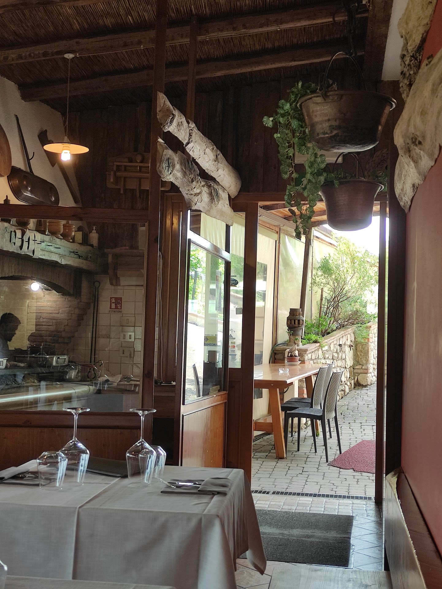 La trattoria è immersa nel panorama delle colline del prosecco. La sala dove sono stata e' affacciata proprio verso bel paesaggio che poteva essere ammirato dalla grande facciata di cui è dotata. L'arredamento è semplice, in legno e ben tenuto.