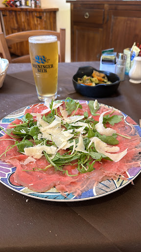Posto semplice ma accogliente. Eravamo in due. Io ho preso un primo mia moglie un secondo, cioè trota salmonata (che poi non era intera ma solo mezza.! ). 2 porzione di patatine fritte, un dolce un acqua e un quarto di vino. spero €34. Secondo me un po' esagerato. Soprattutto pagare €10, e 12 per un primo e mezza trota salmonata che tra l'altro di taglia piuttosto piccola servita in un piatto enorme faceva proprio una magra figura. Dolce della casa buono, e cameriera simpatica. Questa vuole essere semplicemente una critica costruttiva, visto che in zona Ci sono ristoranti dove si mangia bene...