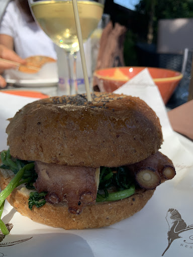 ci siamo fermati perché attratti dal locale molto bello, per cui ci si aspetta anche un buon servizio. Il cane ha avuto accesso, ma abbiamo chiesto acqua del rubinetto e ci è stato risposto di comprare la bottiglia d'acqua... nota che ci ha infastidito. Nel servizio al tavolino, il cameriere è stato poco cortese col bambino che ha ingenuamente preso un bicchiere dal vassoio mentre ci serviva e anche questo ci ha lasciato perplessi. prezzi molto alti rispetto al servizio offerto: il polpo lo sconsiglio: l ho preso con piacere, ma era duro e stopposo.... ho avuto molta difficoltà a mangiarlo. Arrosticini di vitello senza sapore... per 6,50 € per 4 spiedini voglio almeno qualità! Gli altri due panini erano più di qualità, ma uno era carne e l 'altro verdura grigliata.... più semplici.... Non molto contenti. Esposto il mio disappunto sul panino al polpo e gli arrosticini alla cassiera, e la cassiera ci ha applicato un po' di sconto chiedendoci di farlo notare quando ci sono problemi, perché così avrebbero rimediato durante il servizio. Meglio sceglierlo per un aperitivo e la musica, non per mangiare. Come sempre, le impressioni sono...