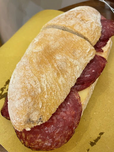 Read more“Una PANINOTECA TOSCANA in Liguria!!!!!” Sono stato in questo locale con mio figlio di 10 anni e me ne sono talmente innamorato che dopo un'oretta l'ho fatto visitare anche a mia moglie. Si tratta di una vera e propria Paninoteca toscana, con panini componibili in base alle voglie del cliente (oppure li si può scegliere già creati in un ampio menù. Gli ingredienti sono innumerevoli e di qualità. Si va dagli affettati (finocchiona, salsiccia cruda toscana, ecc...) ai formaggi per passare alle varie salse create a mano dalla proprietaria e alle verdure. Birre artigianali a go-go, del buon vino e qualche dolcetto "originale (chiedetegli la focaccia calda alla nutella...sorprendente!) integrano l'offerta di questo locale che dispone anche di una piccola ma accogliente saletta interna per poter consumare anche in loco. Locale frequentato anche da motociclisti...una garanzia in più di bontà ed estrema onestà nei prezzi. IMPERDIBILE se avete voglia di un panino (NO HAMBURGER!) italiano di qualità. Complimenti anche alla simpatia ed accoglienza dei...