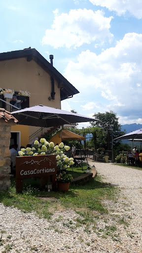 Read moreIncuriosite dal consiglio di molti, io e la mia amica abbiamo deciso di dedicarci una serata a Casa Cortiana. Luogo ricavato all’interno di una contrada, il giardino curato e caratteristico affacciato sulle montagne regala una vista davvero suggestiva al tramonto. Ma la sorpresa non finisce qui: menù ricercato e curato, prezzo onesto per l’offerta, attenti ai dettagli sulle presentazioni e con abbinamenti azzecati. Il menù cambia ogni mese e per luglio prevedeva due antipasti, un primo, la scelta tra cinque secondi ed un dolce; il menù ha un prezzo fisso, si possono togliere delle portate facendo ridimensionare il prezzo (fino a due portate nel nostro caso), ma consiglio sinceramente di provare l’intera degustazione perché merita davvero. Un grazie particolare va ad Alma che ci ha coccolate con le sue attenzioni e simpatia tutta la sera, consigliandoci ottimi vini e indirizzandoci sulle scelte, strappandoci sempre una risata! Ha dato sicuramente un valore aggiunto all’esperienza. Ci ritorneremo...