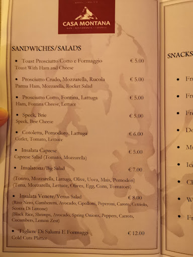 Read moreNeeded to get out of the heat in Torino for the day while on vacation from the U.S. in June 2022 and decided to drive up to see the Matterhorn. We stumbled upon Casa Montana as it seemed to be the only place open with most every table outside occupied. We had a lovely lunch - great pizza, a tuna club sandwich and beers. The wait staff were very friendly and we're grateful they knew enough English to understand what we were ordering and answer any questions we had. Cleanest public bathrooms we'd been in this entire trip from Barcelona to Montpellier to Eze and up to Torino (and stops in many towns...