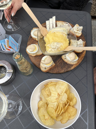 50 euro di febbraio alle 12:45, partendo col fatto che a mezzogiorno e mezza non erano ancora "pronti". Vedi che siamo vestiti palesemente da lavoro e tutti brutti ed unzi, allora perché mi dai il menù come se fossi un turista? (che turista c'è a febbraio??) comunque vedendo i prezzi assurdi io ho preso solo dei ravioli di pesce. Avete presente quando fate troppa pasta e rimane per il giorno dopo e decidete di riscaldarla in padella o al microonde? quel gusto li. Palesemente riscaldata. E come minimo era pure congelata (e manco buona.. almeno prendete la roba bofrost vah) ed avevo pure un capello nel piatto (che può succedere) sta di fatto che mio padre ha preso anche il secondo ed abbiamo fatto a metà (tranci di tonno decenti). In più mezzo bicchiere di vino da rabbini ed io ho preso l'acqua. Se dovete mangiare, pigliate un panino in un altro bar e vi...