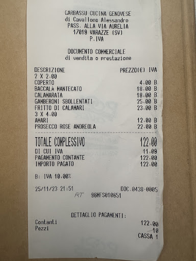 We went exploring this restaurant in Varazze (Liguria, Italy) to celebrate Sunday with the family. We found a cozy, intimate, quaint place, with good vibes and a vintage personality. The service was very good, people here are very friendly, and the food was just amazing... See the pics 😃 Fritto misto Tagliolini di borragine con carciofi e ricciola Calamaretti Insalata di tonno con olive, pinoli, pomodori Flan di broccoli romani Tiramisù scomposto Pastafrolla di mascarpone e caramello salato E Valdobbiadene e caffè ...we hope you will open in...