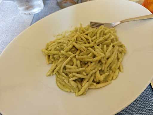 Read moreChe tristezza.... Mangiare qui mi ha veramente rovinato la giornata. Il ristorante sarebbe anche piacevole e il servizio gentile, ma il cibo? Vade retro! Abbiamo ordinato due piatti di trofie con il pesto, ci sono arrivate un "pugnetto" di trofie tristissime in un largo piatto, con un condimento sbiadito e pallido che ricordava lontanamente il colore del pesto. Il sapore non mi faceva andare oltre alla prima forchettata, un pesto orribile industriale in barattolo che probabilmente non aveva mai visto il basilico. Idem mia moglie, che di solito é meno critica di me, non ha mangiato oltre il primo boccone. (Specifico che sono di Genova e il pesto lo mangio pure a colazione). Abbiamo interrotto li il nostro pranzo, chiesto il conto, e pur avendo espresso il nostro disappunto, i piatti ci sono stati fatti pagare, €12 per porzione di un piatto veramente immangiabile. Nemmeno i "bauscia" dell'insegna ci mangerebbero. Da evitare assolutamente. ATTENZIONE ATTENZIONE! SICCOME IL PROPRIETARIO HA RISPOSTO CON MENZOGNE RISPONDI QUI DI SEGUITO: