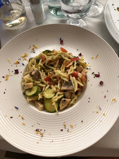Prima di cenare abbiamo chiesto se fosse possibile bere qualcosa sulla terrazza lì fuori e siamo stati accolti da un giovane uomo gentilissimo che ci ha serviti. Poi una volta al tavolo è arrivata una cameriera simpatica e gentile che ci ha spiegato bene i piatti che non conoscevamo. Poche cose, tipiche e non, ma veramente BUONE. Io ho preso come antipasto il Cappon Magro, tipico della cucina ligure ed era divino, altri hanno preso la tartar di gambero che era delicatissima e mio marito il guazzetto super gustoso che riempiva la bocca. Io poi ho preso un fritto che era meravigliosamente ricco. Abbiamo preso tutti cose diverse e tutti avevano un aspetto e un profumo fantastico. Unica microscopica pecca, se proprio proprio devo cercare un difetto è stato trovare qualche spina nell'antipasto, ma dettaglio che è facilmente sistemabile. Per il resto io lo consiglierei al 100%. Pur campendone poco anche la selezione di vini devo dire che è notevole e i dolci alla fine sono una degna conclusione....