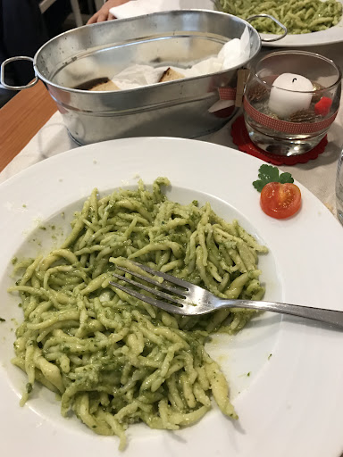 Menu 7.5 Ristorante specializzato principalmente in piatti di mare e di terra a volte anche con piatti fuori menù, e pizze con il loro forno a legna. Molta scelta nella loro cantina, sia di vini che di birre artigianali. Siamo rimasti tanto soddisfatti dalle nostre scelte, piatti con porzioni giustissime e impiattate abbastanza bene. Ottimo il loro antipasto fuori menù che consisteva in calamari gratinati con pane aromatizzato, ma il piatto forte del menù sono stati sicuramente stati gli spaghetti con ricci di mare, era da tantissimo tempo che non li mangiavo (e se per caso vi capita di averlo nel fuori menù ve lo stra-consiglio!!) altrettanto buonissime e ovviamente super consigliate le linguine con gamberi e pistacchio della mia ragazza, che invece erano in carta nel menù. Carta dei dolci tradizionale, nota di merito per la torta della nonna, era semplicemente buonissima. Quindi, come avrete potuto capire, la cena ci ha soddisfatti in pieno!.