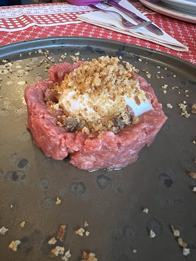 Read moreTavolata di amici, io ho preso una battuta con tartufo e uovo e un primo di ravioli, la battuta era buona, il tartufo abbondava.. I ravioli alla salsiccia non mi sono piaciuti.. Abbiamo preso 7 antipasti 8 primi/secondi, una grigliata mista diviso 8 e 4 dolci, solo una bottiglia di vino,. abbiamo speso 45 a testa,. (grigliata buona e cotta bene) nel complesso si mangia bene, da trattoria ecco,. ma vorrei anche i prezzi da trattoria,. se avessimo preso tutti antipasto, primo o secondo e dolce con una sola bottiglia di vino ne uscivamo con 50 a testa,. senza aver mangiato da uscire pieni ecco,.. poi 2,50 euro di coperto a testa!? dai, no.. Capisco la necessita di rincarare, ma oramai sono diventati tutti ristoranti, le trattorie non esistono piu.. quando un tempo si andava a mangiare a trattoria, spendevi 40 /45 euro, ma uscivi dopo esserti mangiato mezzo ristorante e bevuto abbondante., certo, niente gurmet e nessun vino pregiato, ma comunque si mangiava bene, abbondante, e si beveva, oggi non è piu così.. Forse bisogna cambiare il nome da trattorie a ristoranti.. ripeto, non è solo questa, oramai quasi tutti sono così,. nel complesso ci siamo trovati bene, nulla da dire., ma sento la mancanza delle...