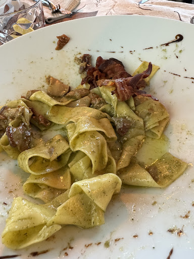 Pappardelle with pesto sauce and crunch y bacon âŹ16 Lasagna x2 âŹ12 each CrĂȘpes Zucchine âŹ13