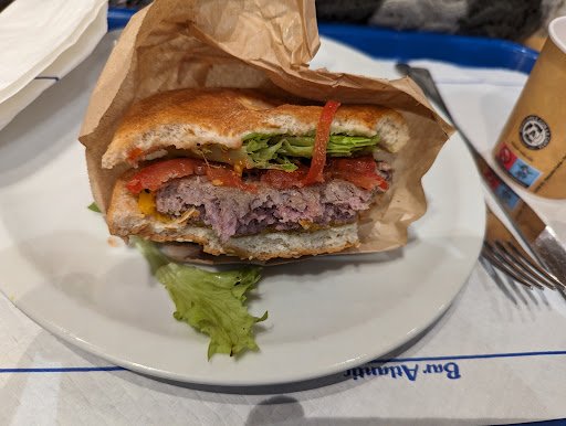 Read morePranzo prima di una spesa settimanale. Prendiamo due hamburger. Scelta pessima. Il pagamento è veloce e l'attesa relativamente poca, ma la qualità del cibo è davvero bassa anche considerando il costo abbastanza alto (parliamo di 8-10 euro ad hamburger, senza patatine o bevanda, solo il "panino". La carne è molto industriale, probabilmente non è quella venduta nel reparto macelleria. Il pane aveva quel gusto di pane surgelato riscaldato. Pancetta e uovo totalmente insapori. Esito: mezzo panino buttato via perché non riuscivo a mandarlo giù. La prossima volta mi prenderò del sushi e lo mangerò seduto al tavolo, ordinando solo una...